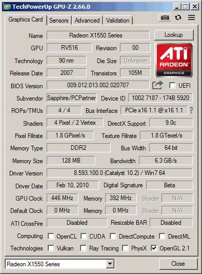 Radeon X1550 GPUZ